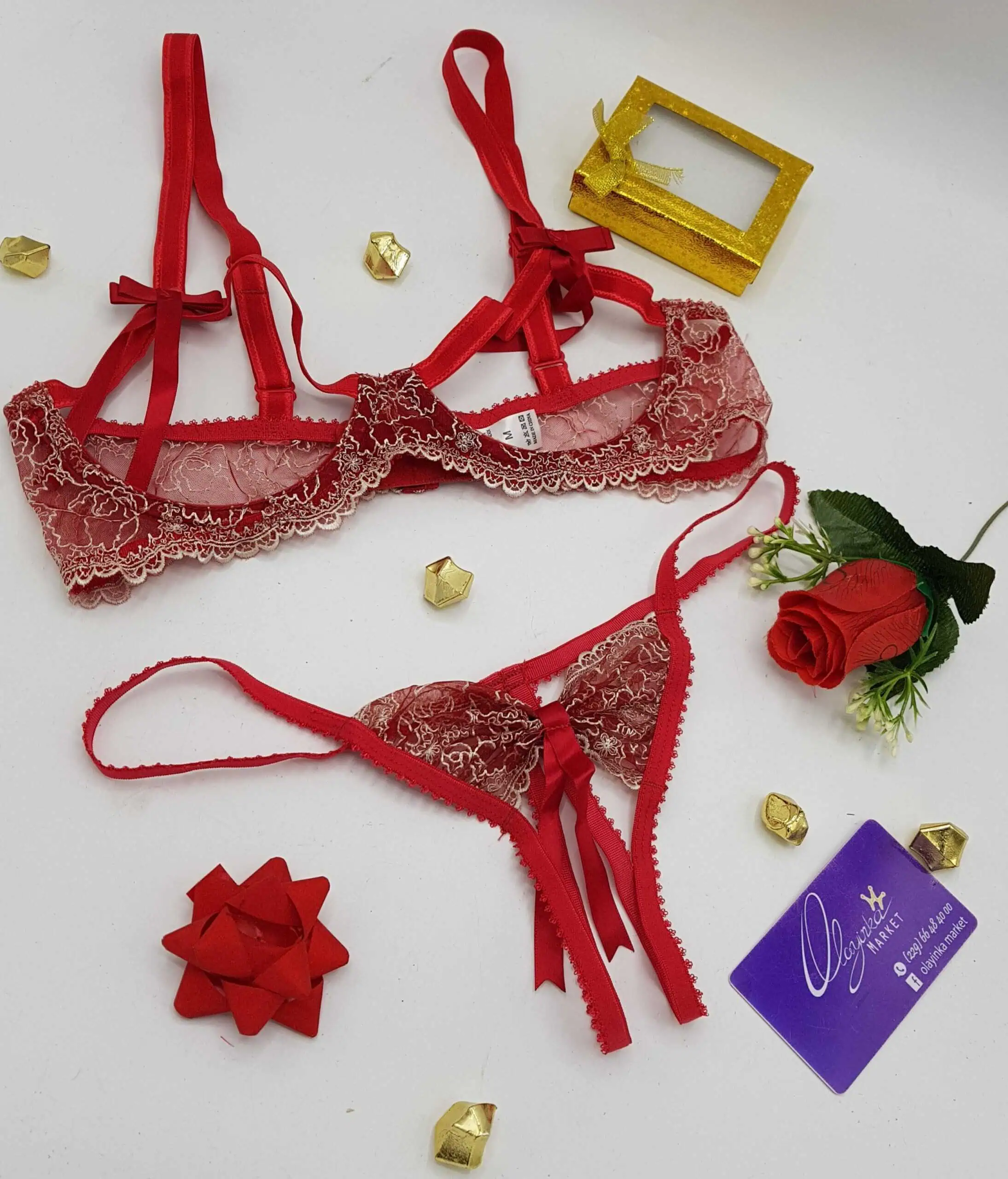 Lingerie sexy femme rouge en dentelle. Ensemble 2 pièces raffiné et sensuel, parfait pour séduire et sublimer vos courbes.
